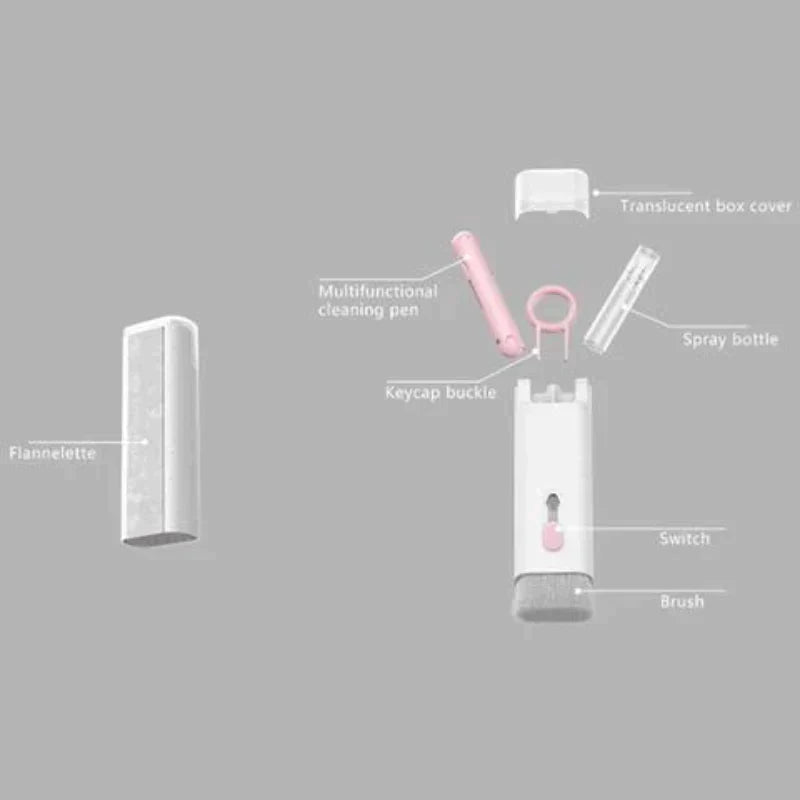 - NEW DESIGN: All-in-one design. The product includes a multi-functional cleaning pen, spray bottle, keyboard brush, and flannel cleaning wipe.