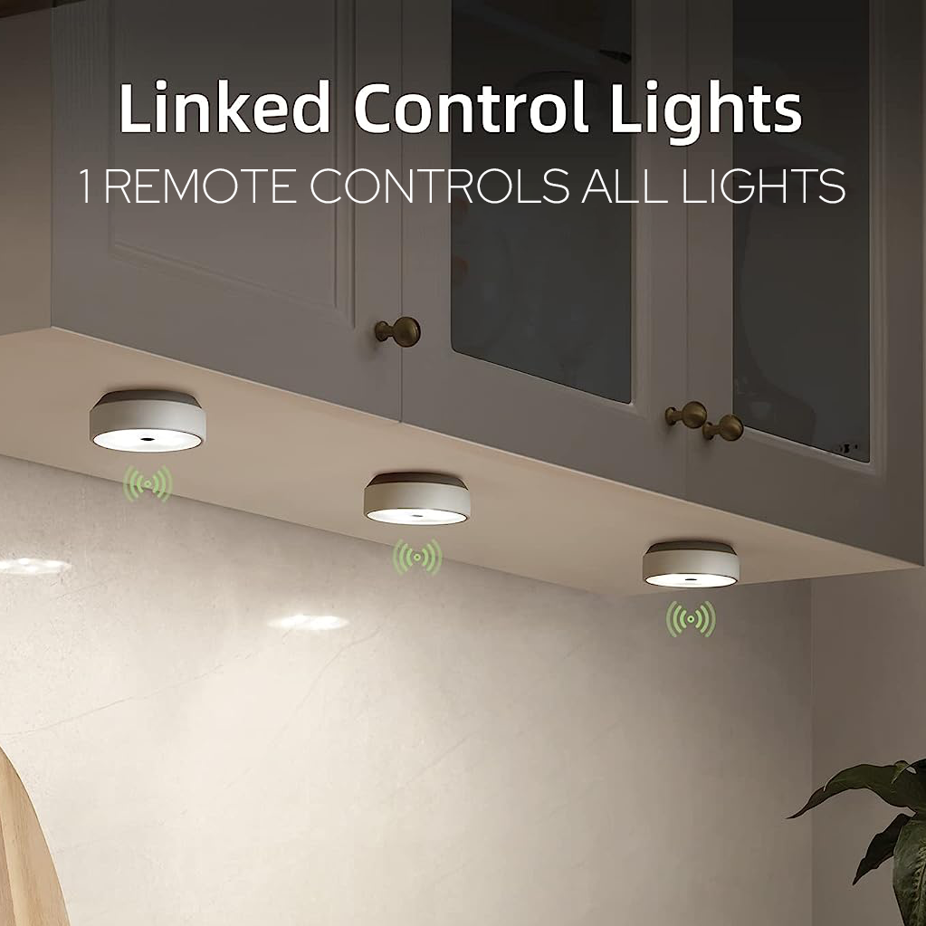 - Elevate your kitchen with our Wireless Kitchen Puck Lights. Experience synchronized, ultra-bright illumination with adjustable color temperatures and easy installation via adhesive or magnets. Control options for warm or cool lighting are available on the remote.