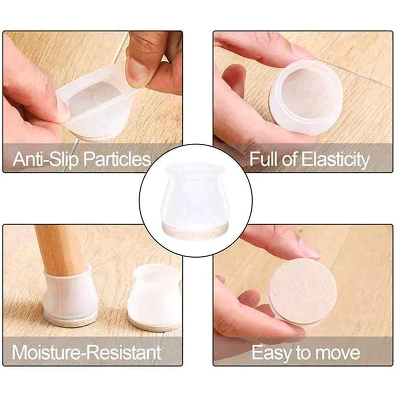 - FLOOR PROTECTORS: Protects Both Chair Table Legs and Floor From Damage; Anti-Slip Bottom Pad/Felt Pad Prevents Scratches And Noise Without Leaving Marks. The Flexible Silicone Box is Easy to Slip-On, Giving Chair Leg a Snug Grip Like a Glove.
