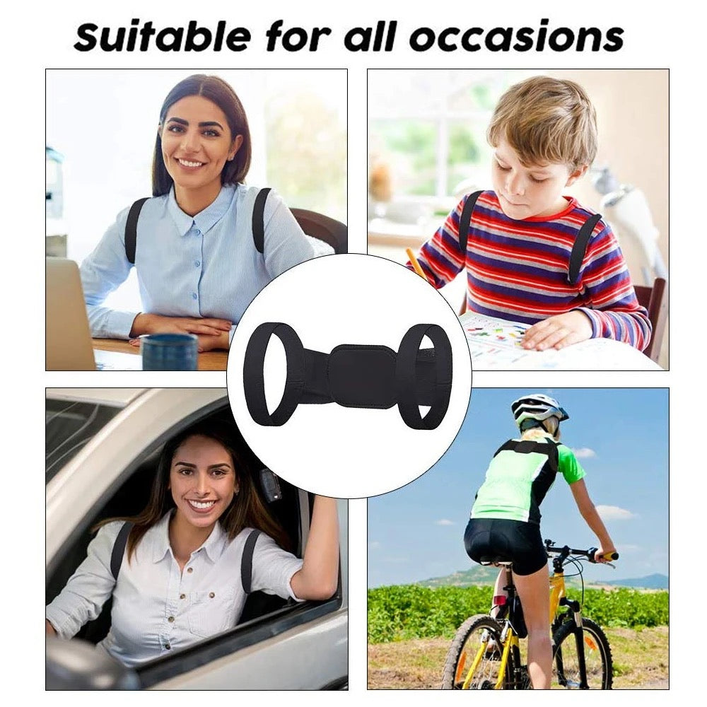 - The posture corrector quickly straightens shoulders and back. A quick way to stop slouching and hunching when sitting with rounded shoulders at a table.