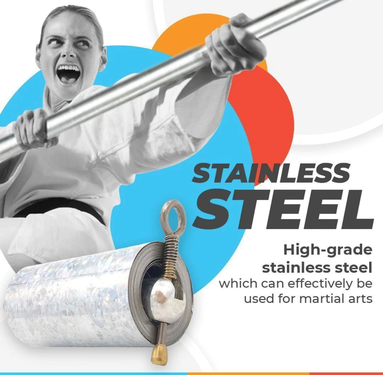 - Steel Build - Crafted from high-grade stainless steel, this sturdy staff is made for rigorous training and self-defense.